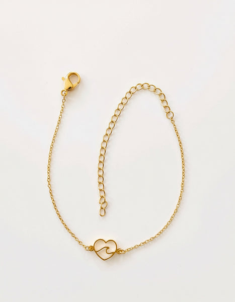 A delicate, ocean-inspired bracelet featuring a tiny heart outlined with a flowing wave. Designed for beach lovers, surfers, and anyone whose heart belongs to the sea.